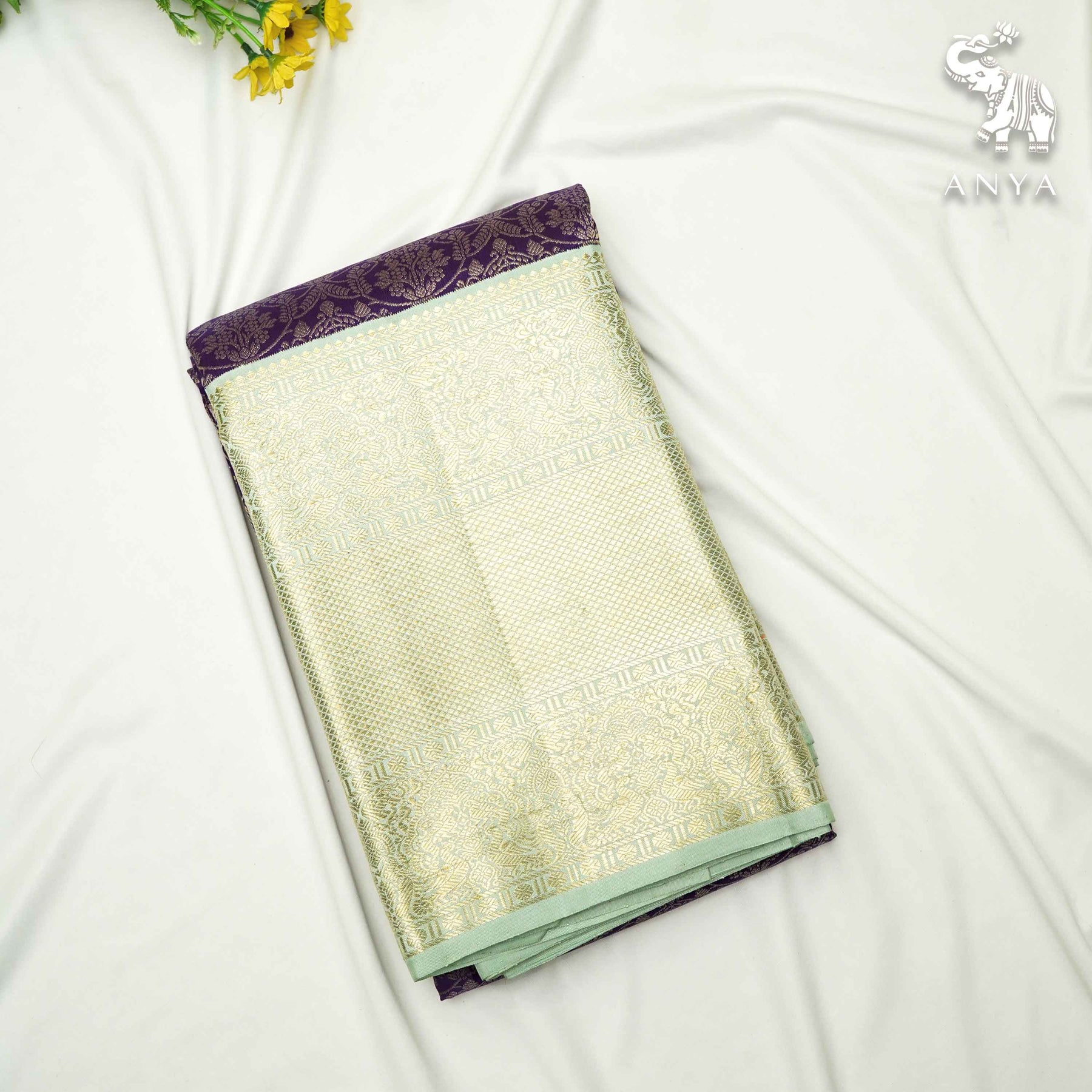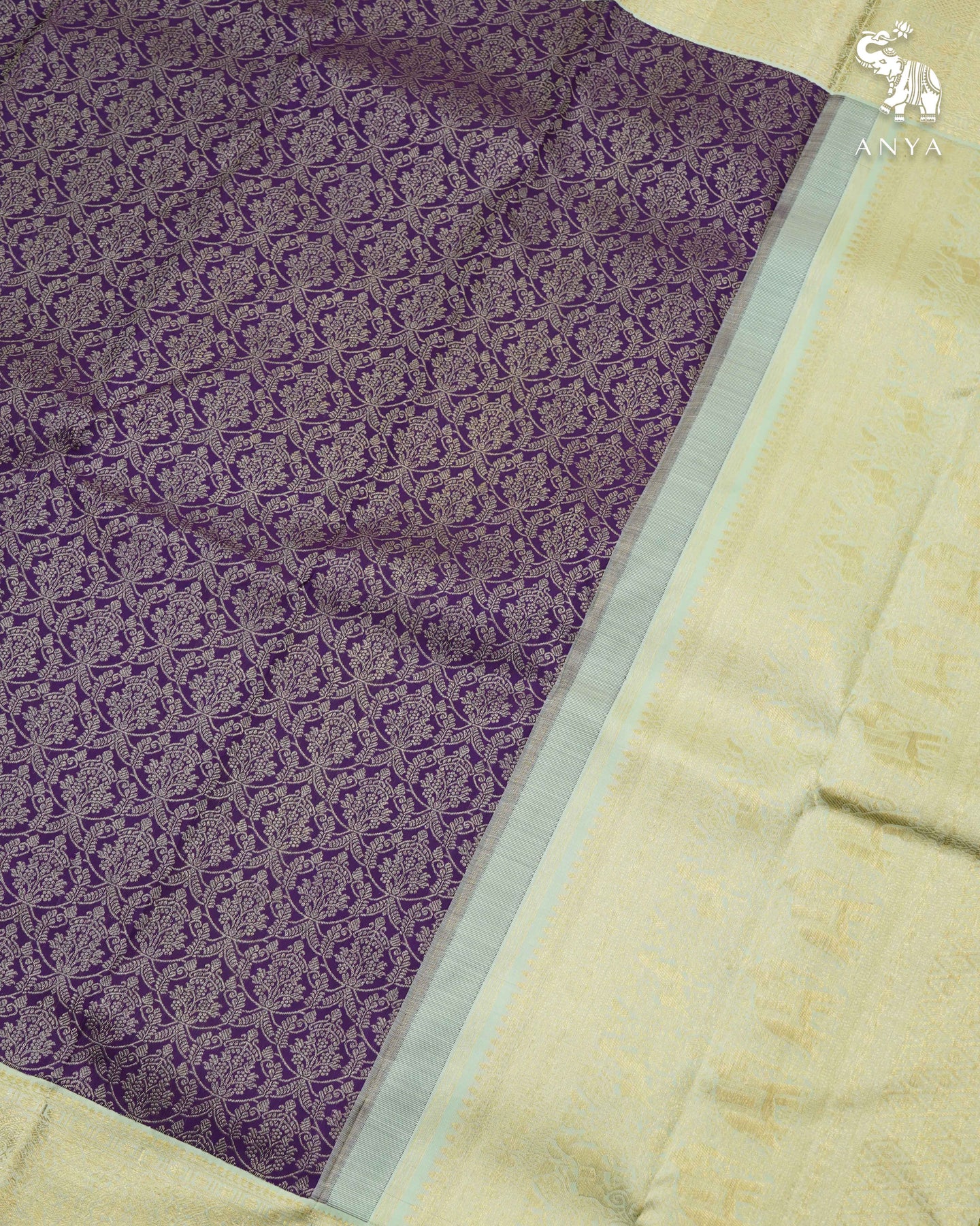 Dark Violet Kanchi Silk Saree with Zari Creeper Design