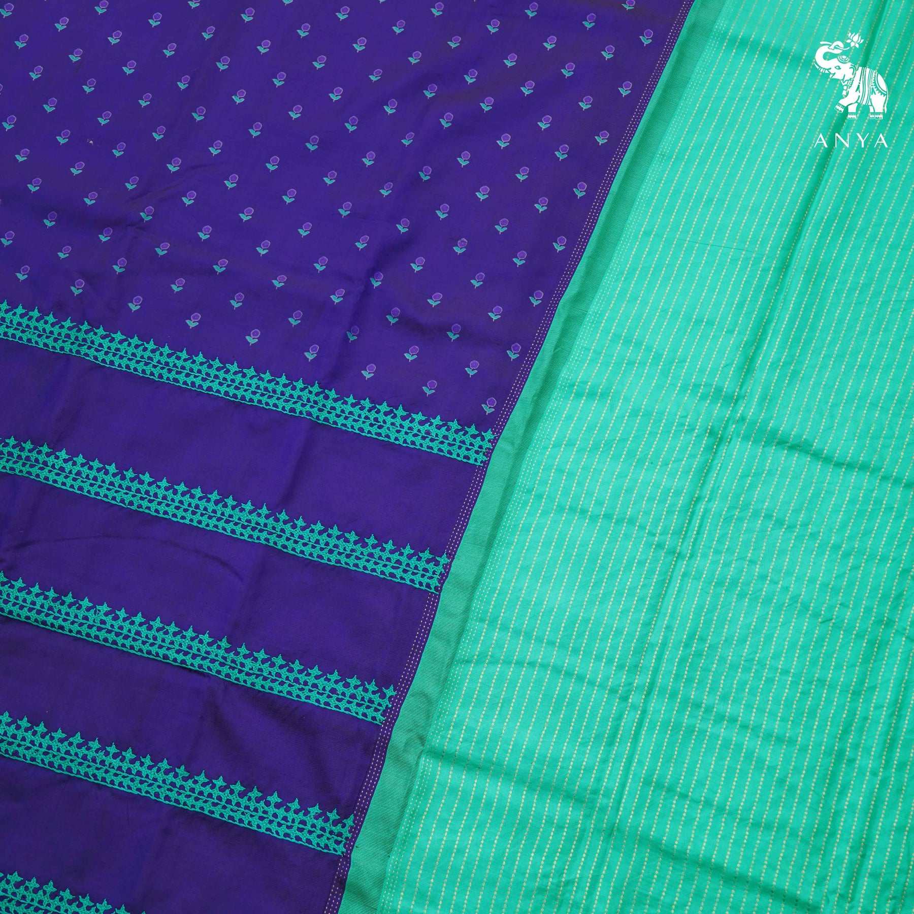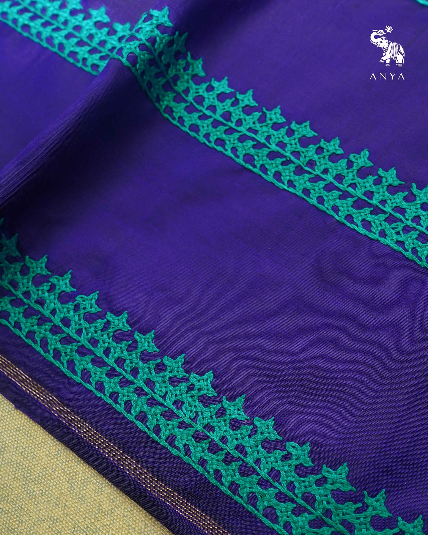 Ms Blue Printed Kanchi Silk Saree with Kutch Work Design