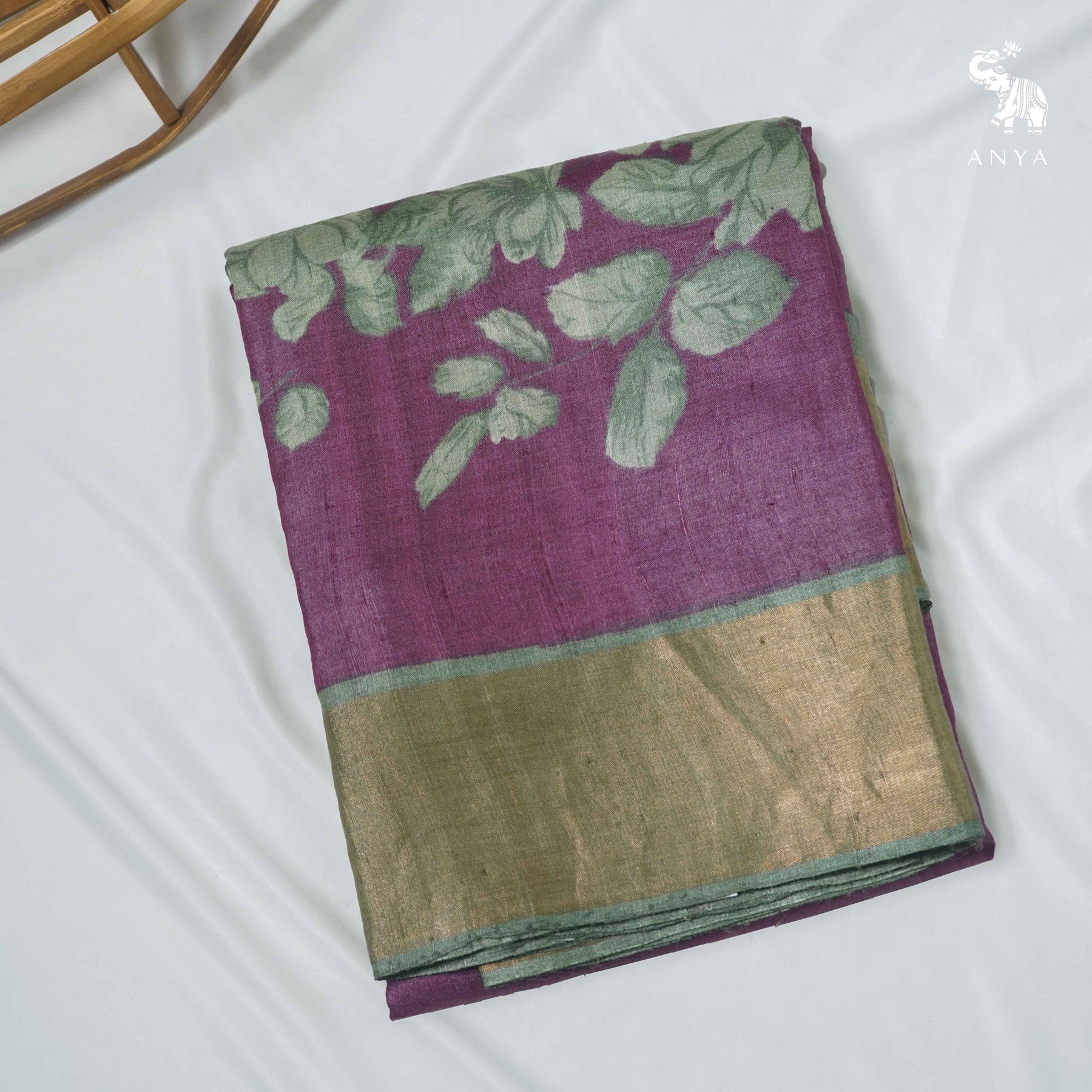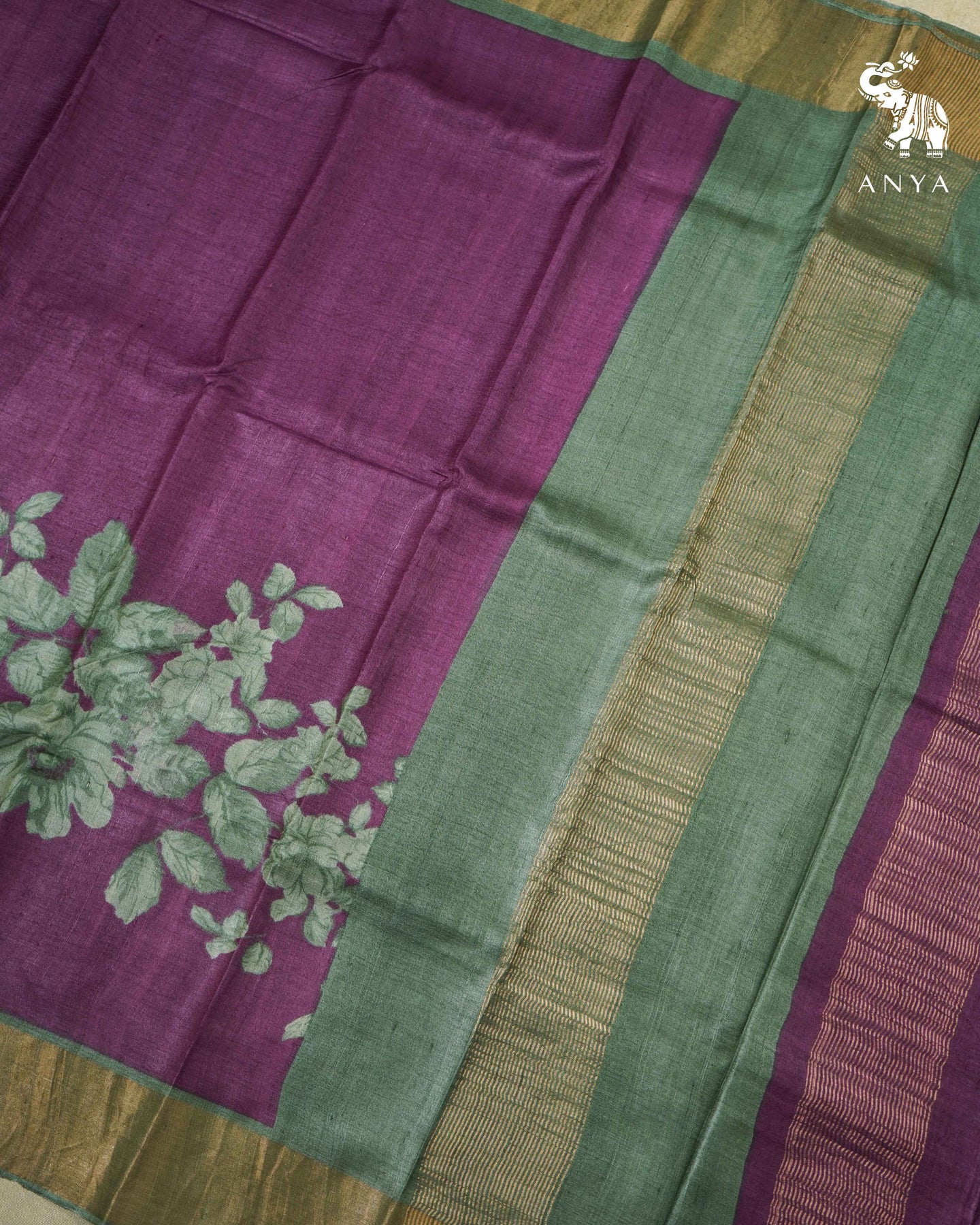 Wine Tussar Silk Saree with Floral Print Design