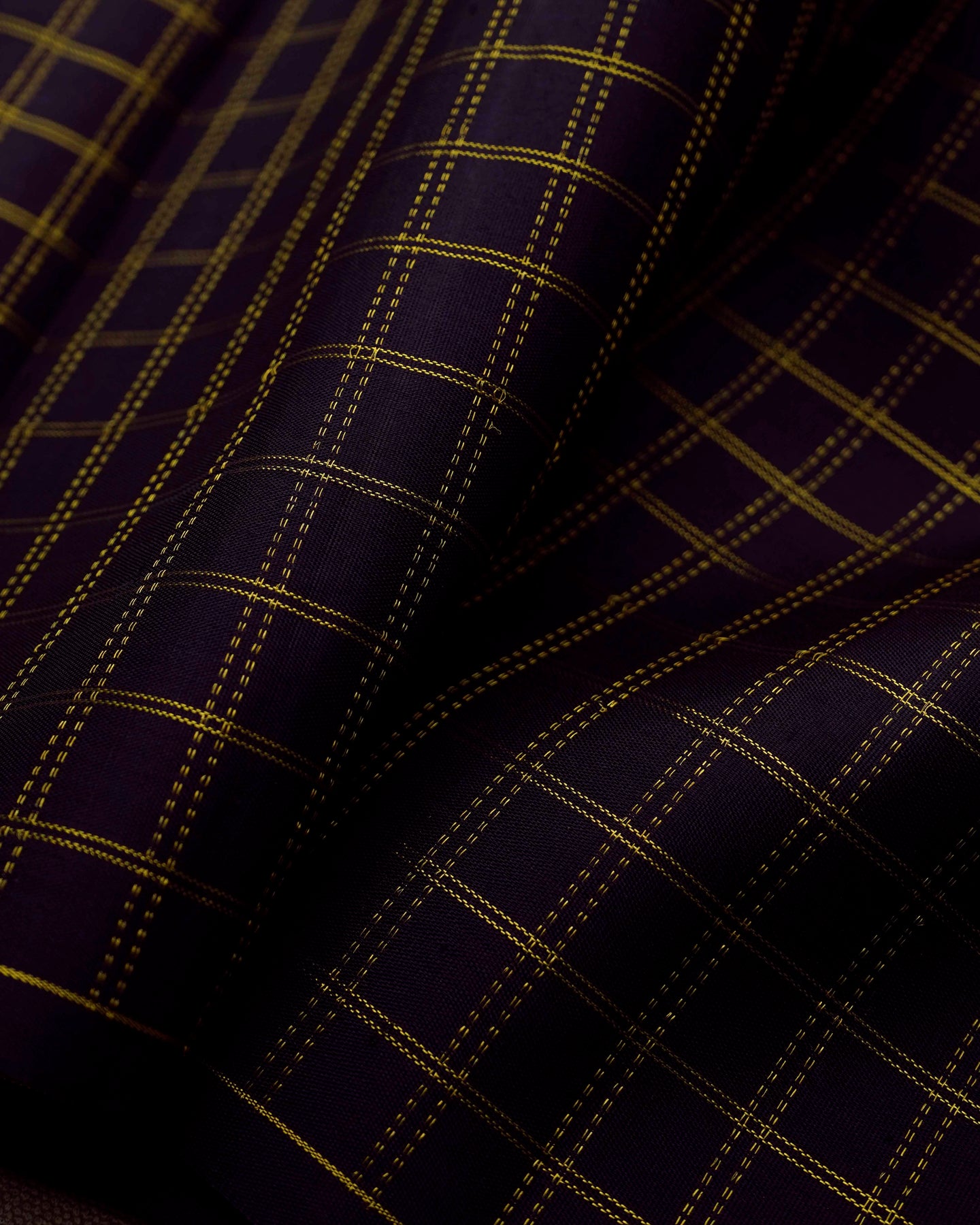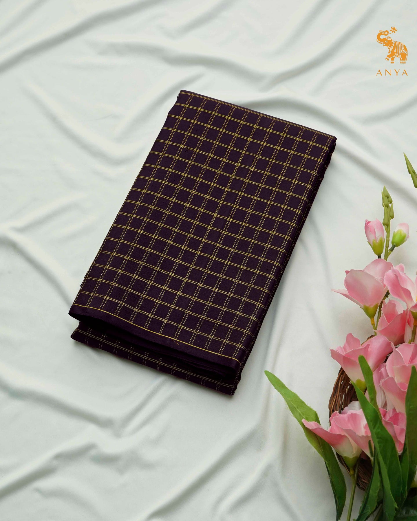 Navy Blue Kanchi Silk Fabric with Zari Kattam Design