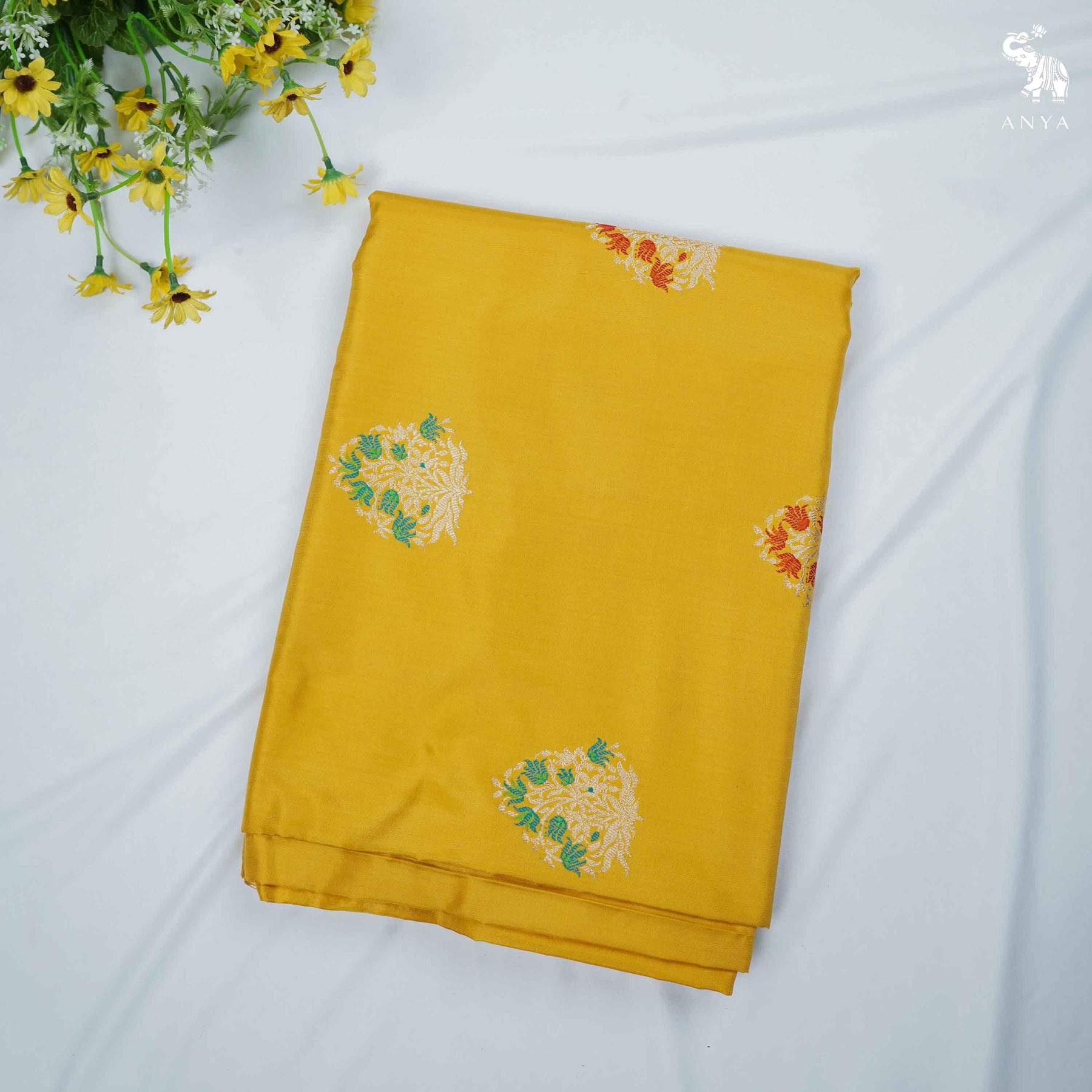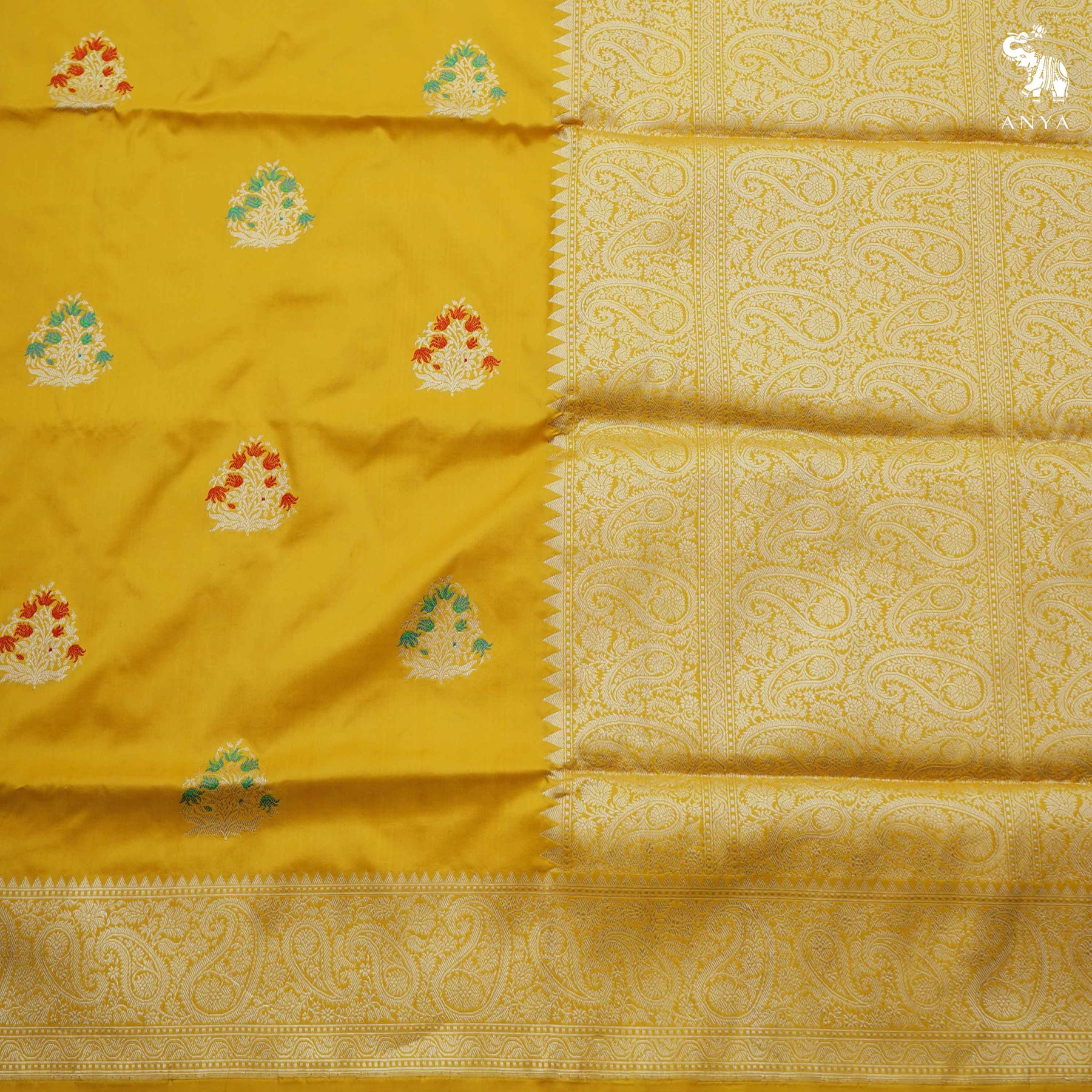 Oil Mustard Banarasi Silk Saree with Floral Butta Design
