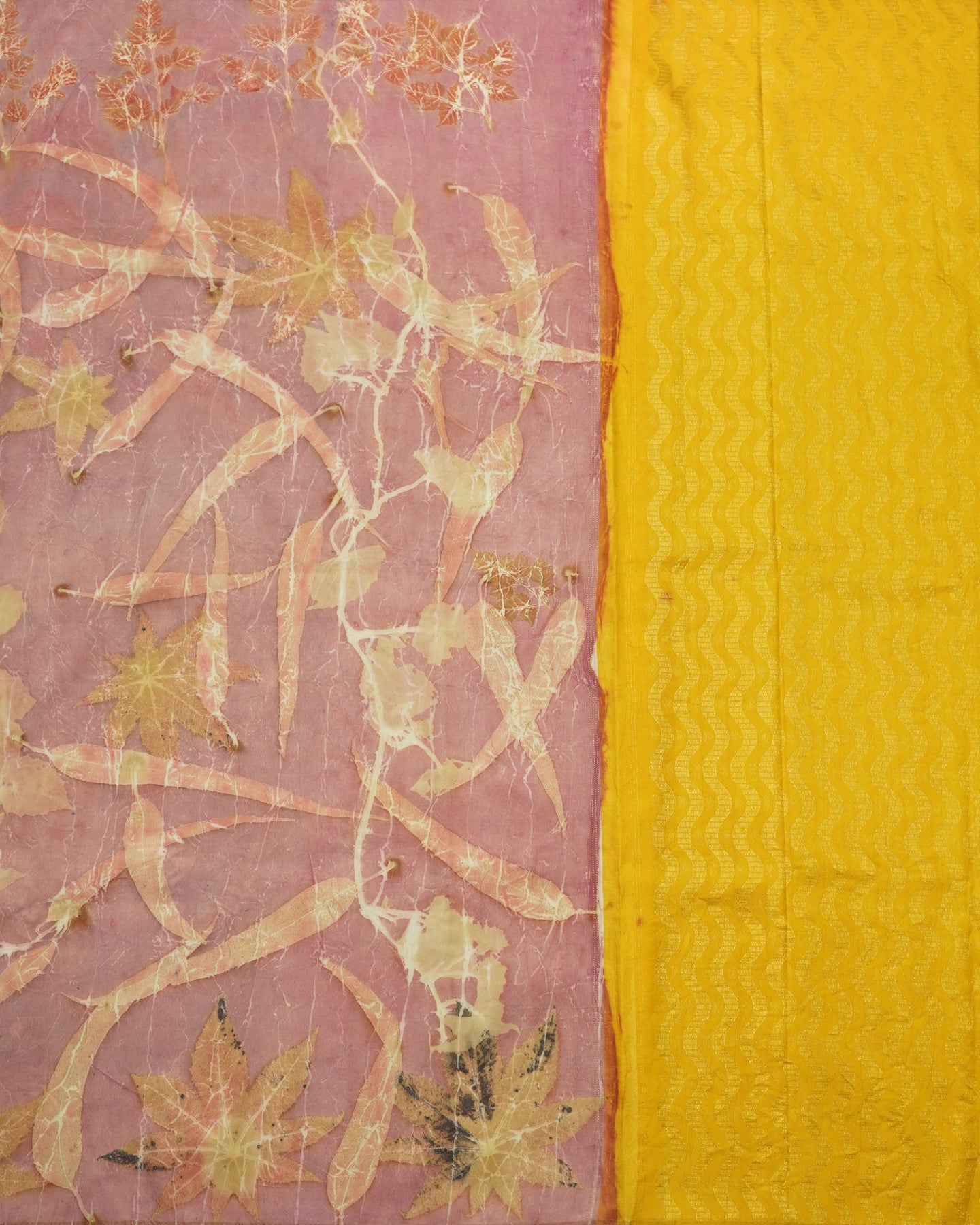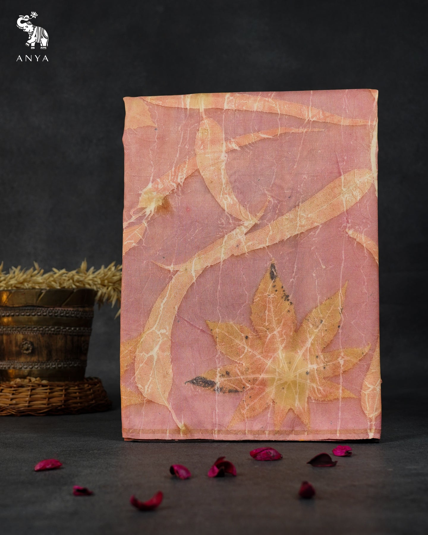 Onion Pink Eco Print Kanchi Silk Saree with Leaf Design