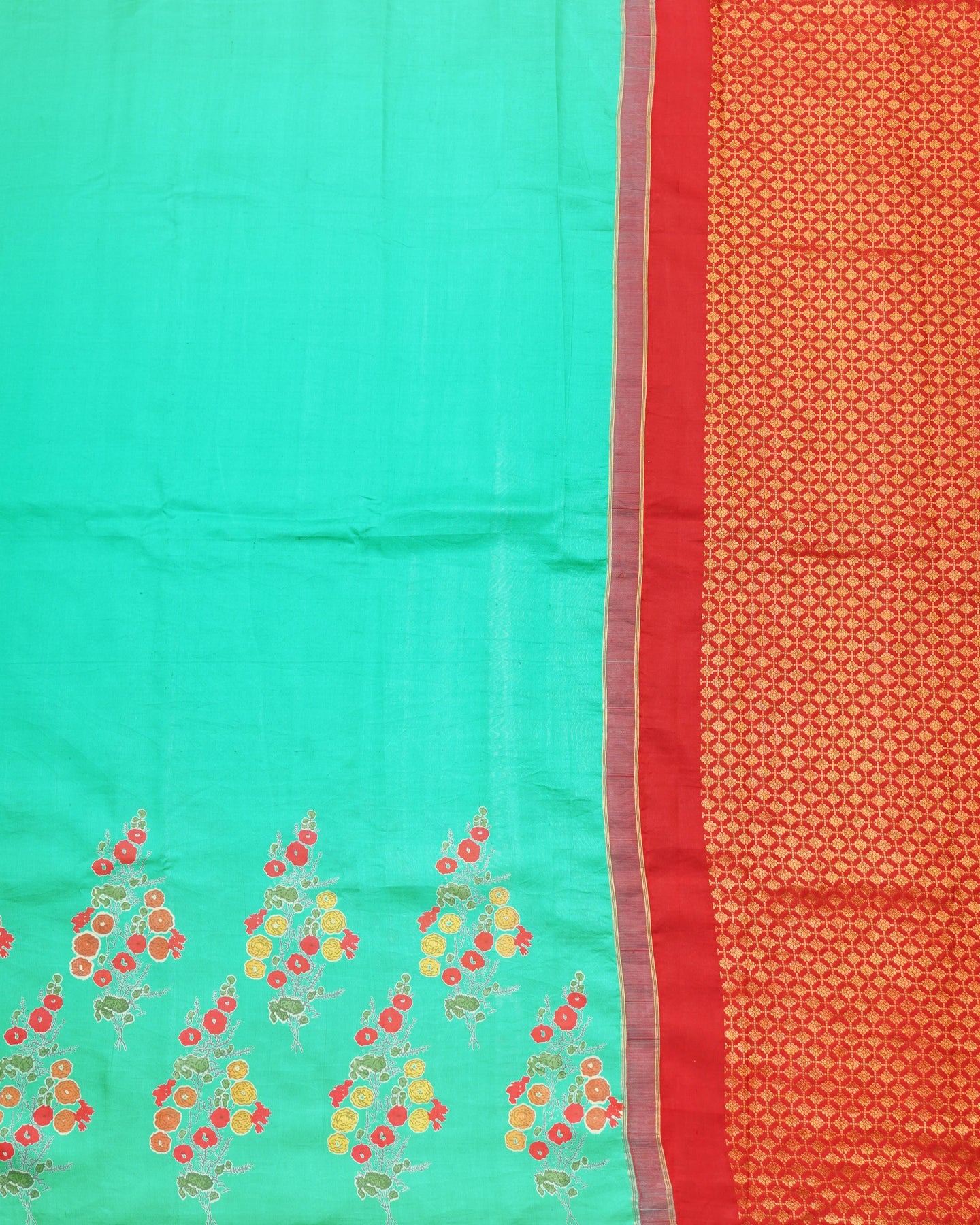 Note: Pure kanchi silk sarees are digitally printed to create trending designs. Minor imperfections in the prints are natural which makes each saree unique and is the beauty of the handcrafted sarees.