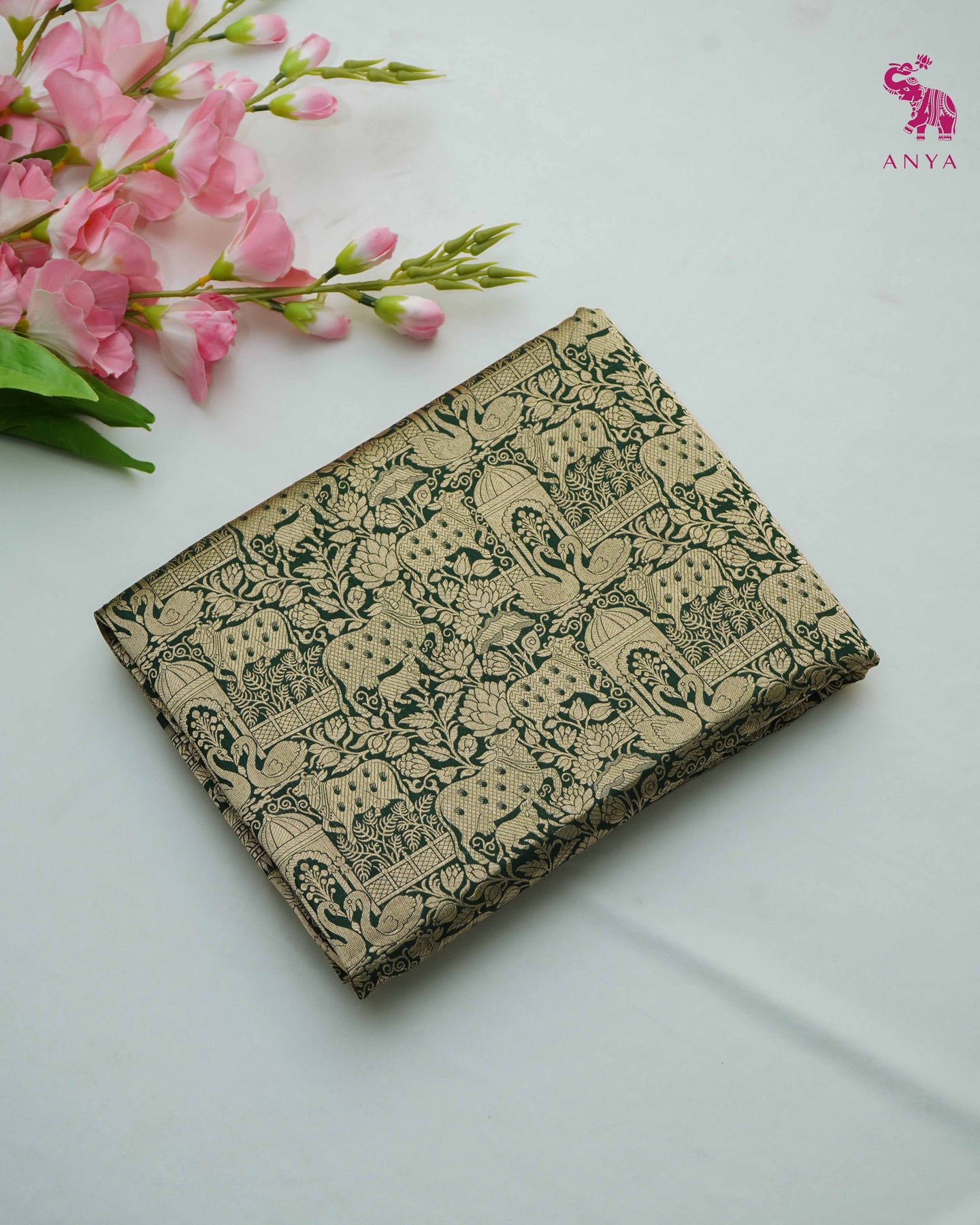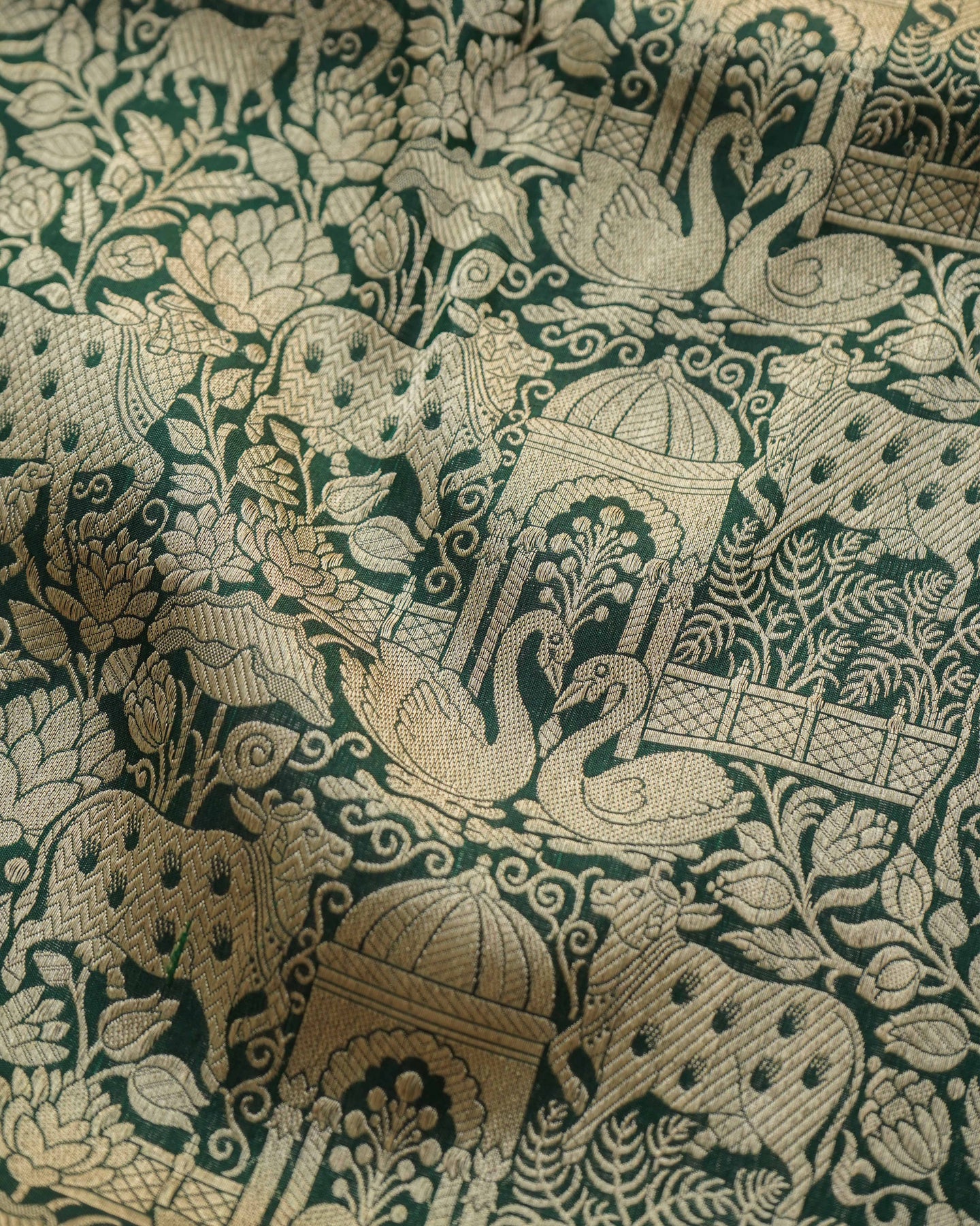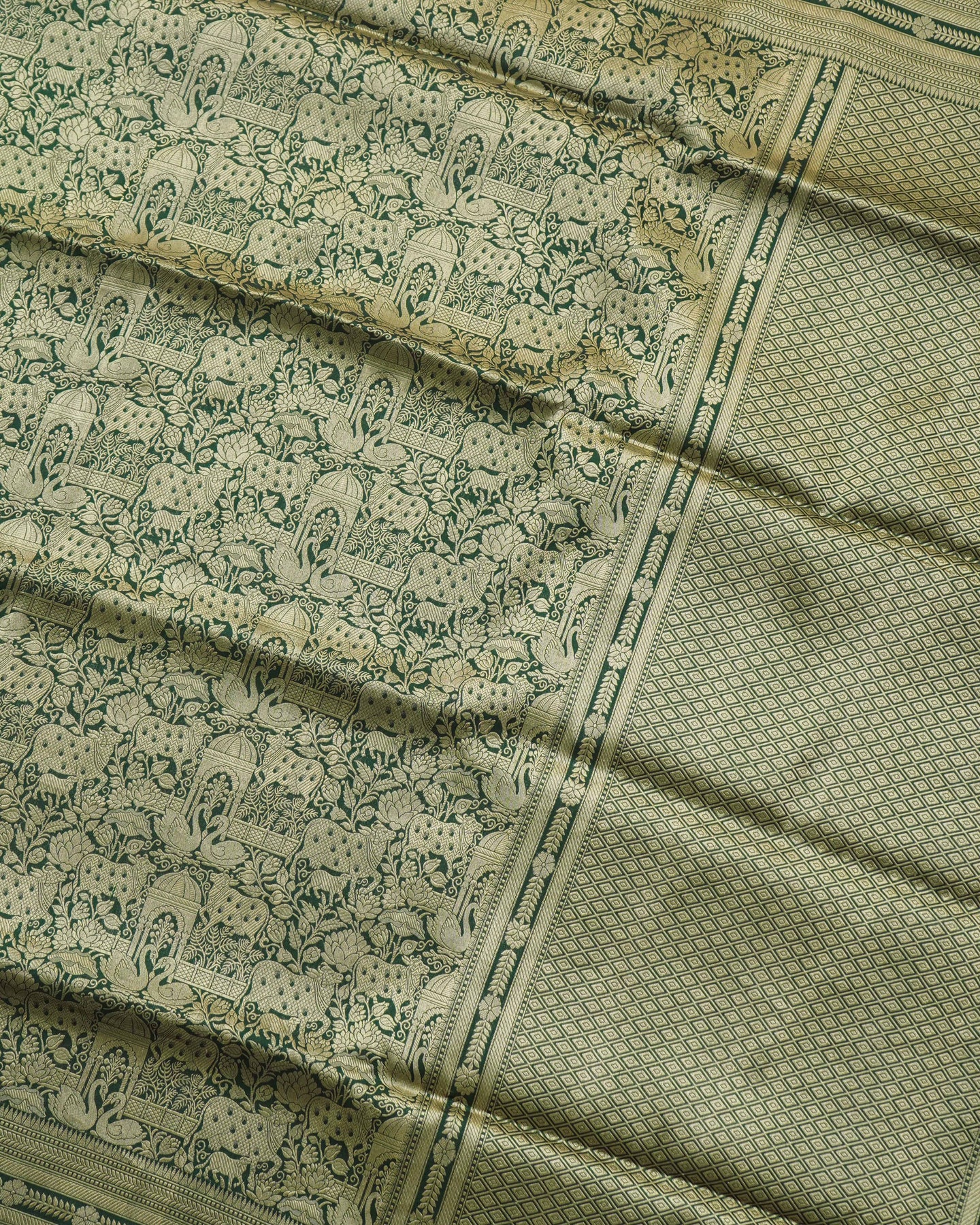 Bottle Green Banarasi Silk Saree with Animal Creeper Design