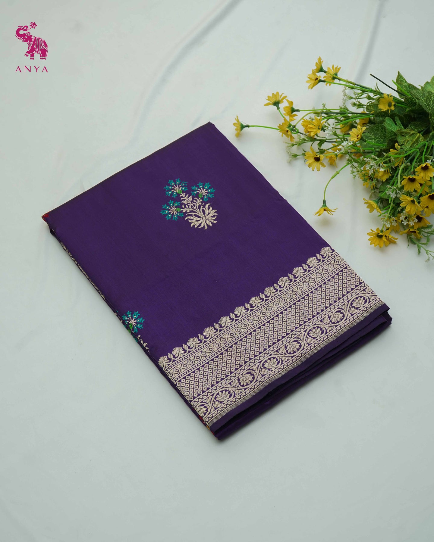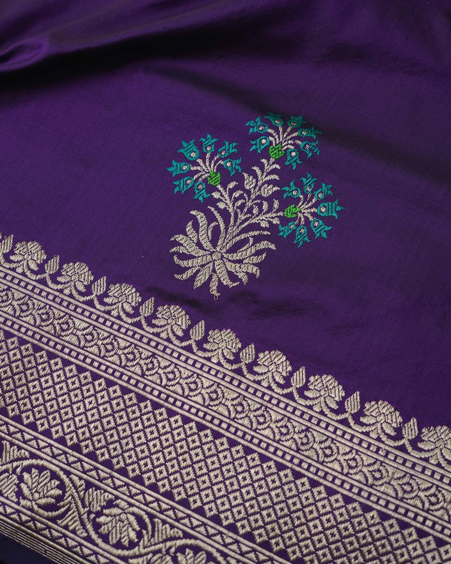 Big Floral Zari Butta Dark Violet