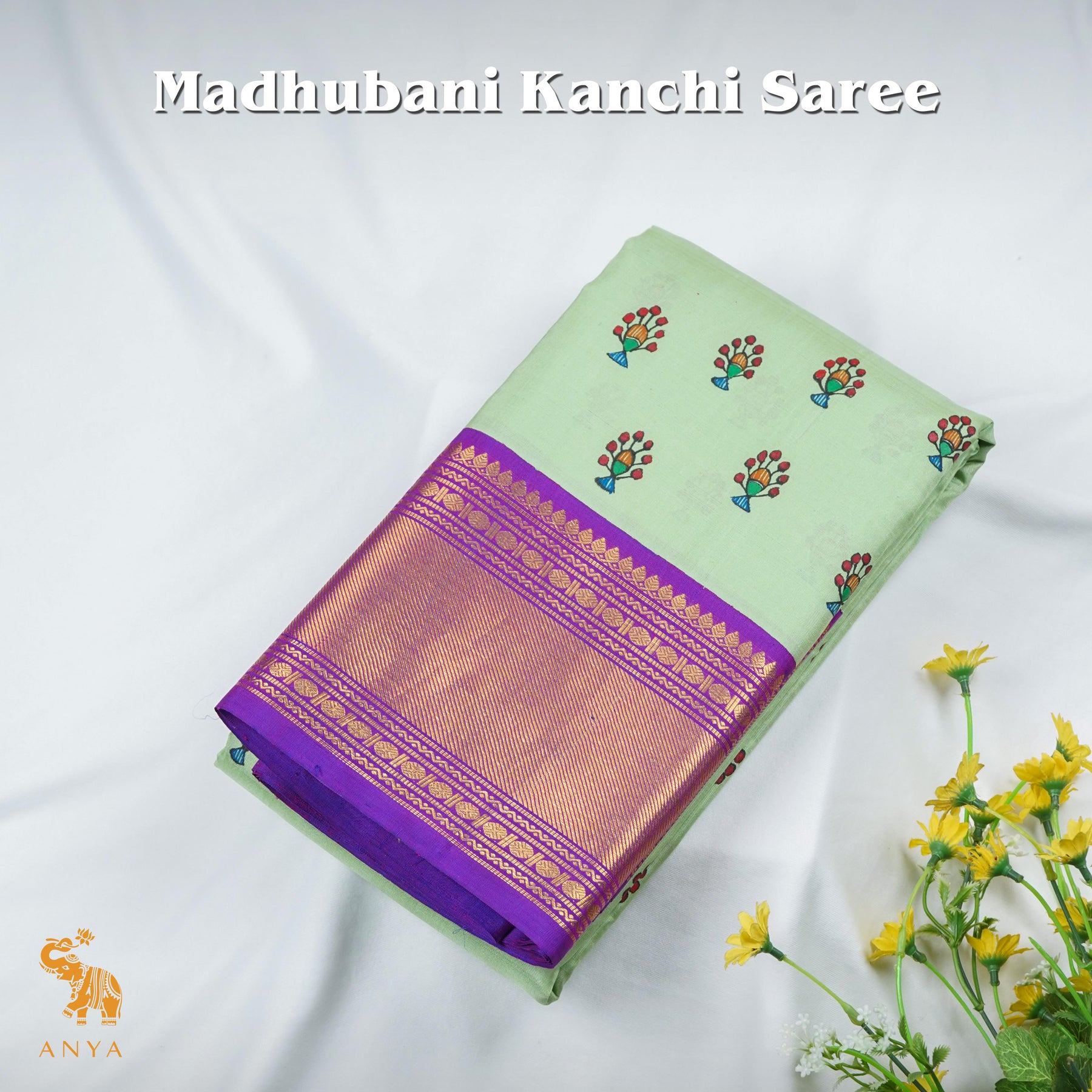 Apple Green Madhubani Kanchi Silk Saree