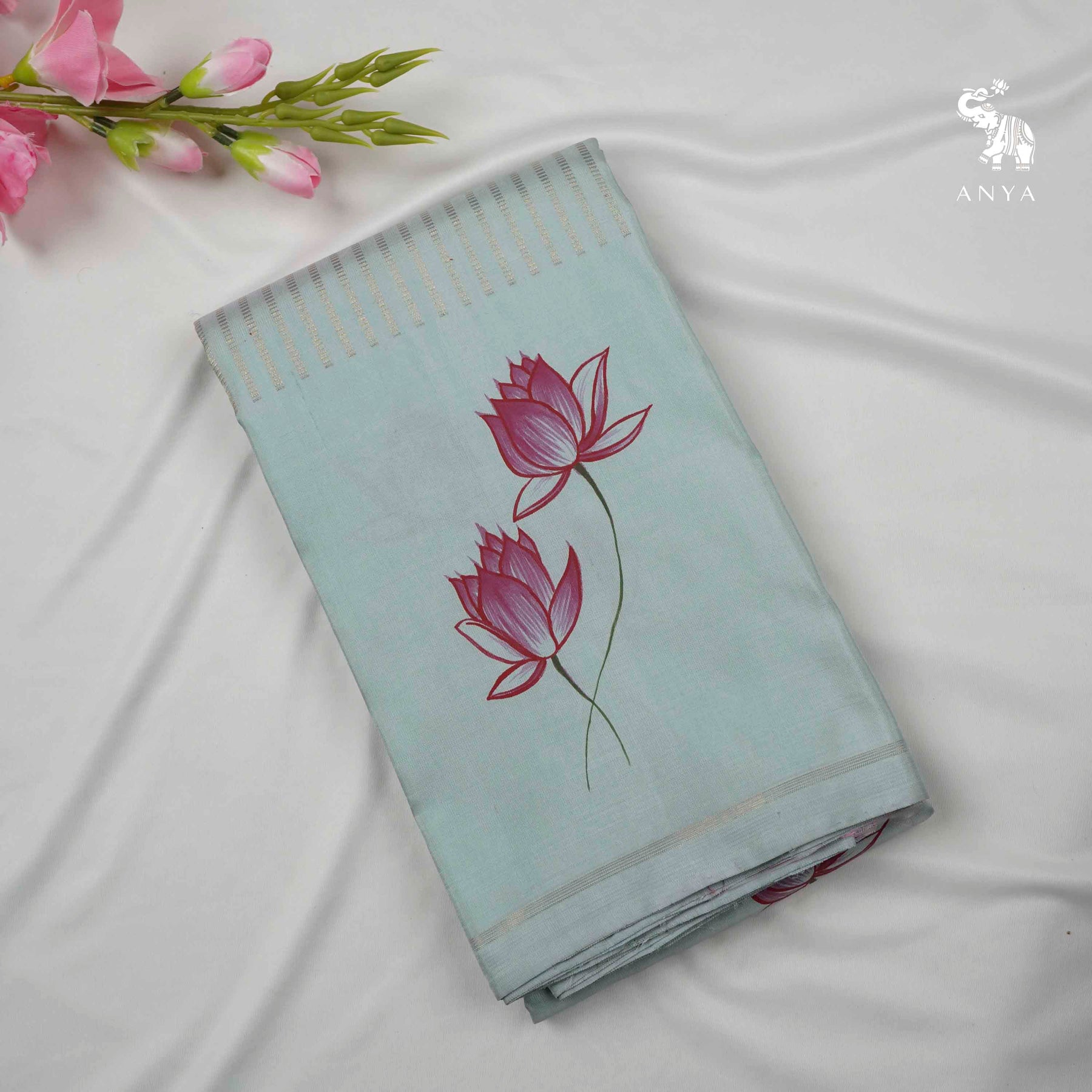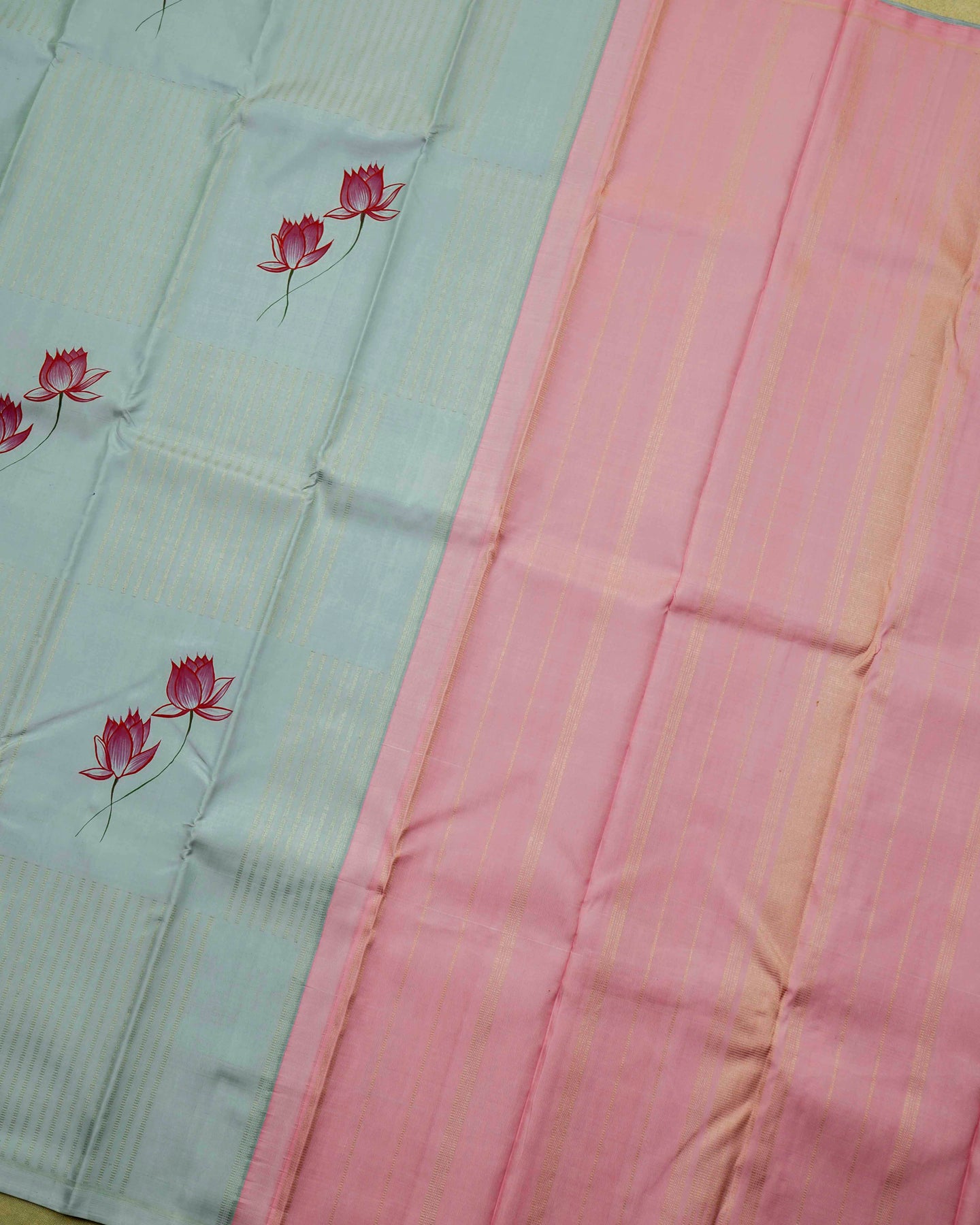 Zari Box Pattern / Lotus Hand Painted Grey