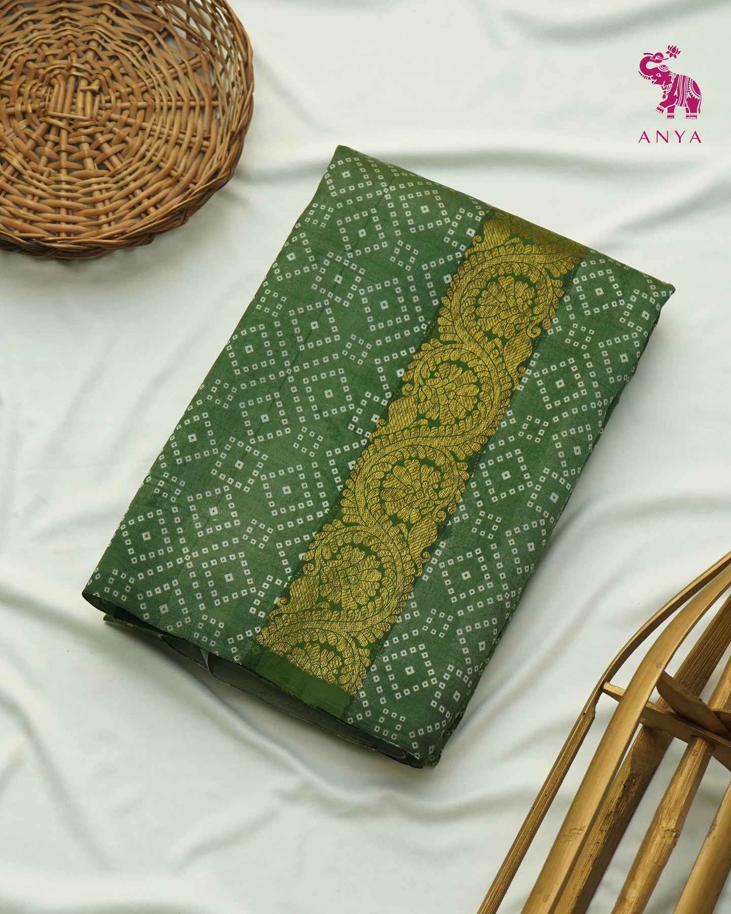 Mehandi Green Printed Kanchi Silk Saree with Bhandhini Print Design