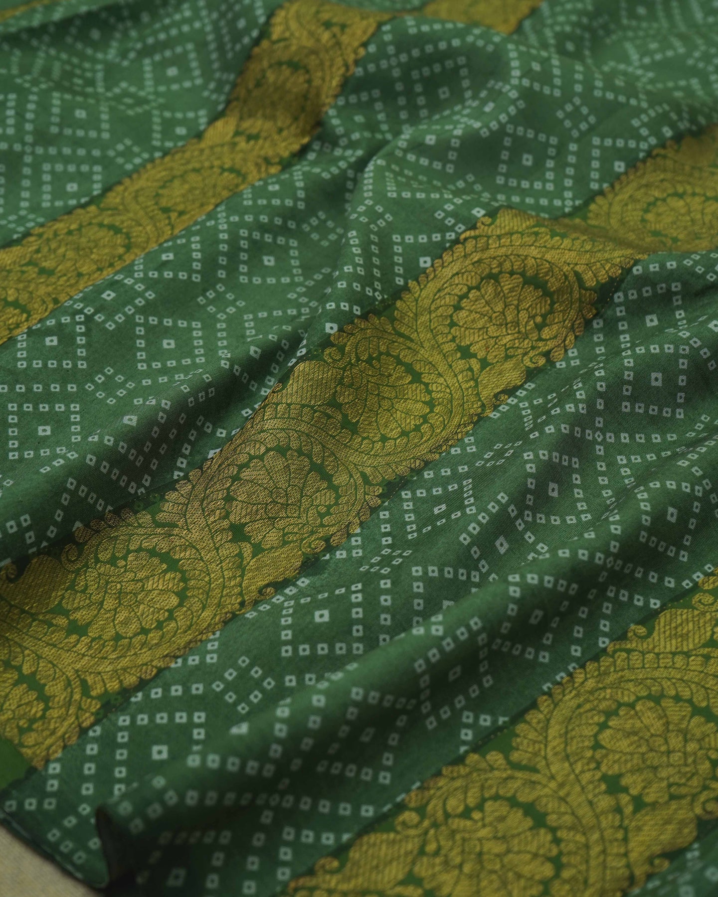 Bhandhini Print / Panel Zari Design Mehandi Green