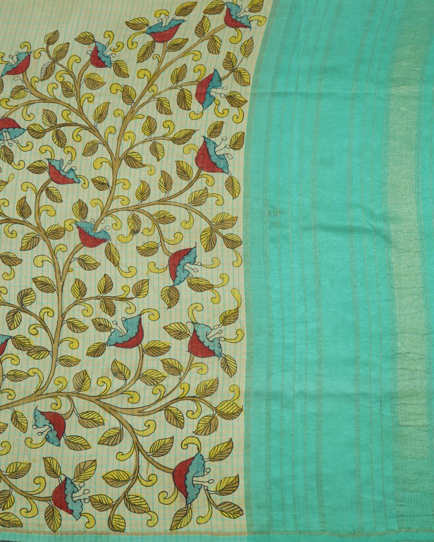 Note : Pen kalamkari sarees are exclusively handcrafted and hand-painted using vegetable or natural dyes. Expect minor imperfections which is the beauty of the authentic kalamkari technique.