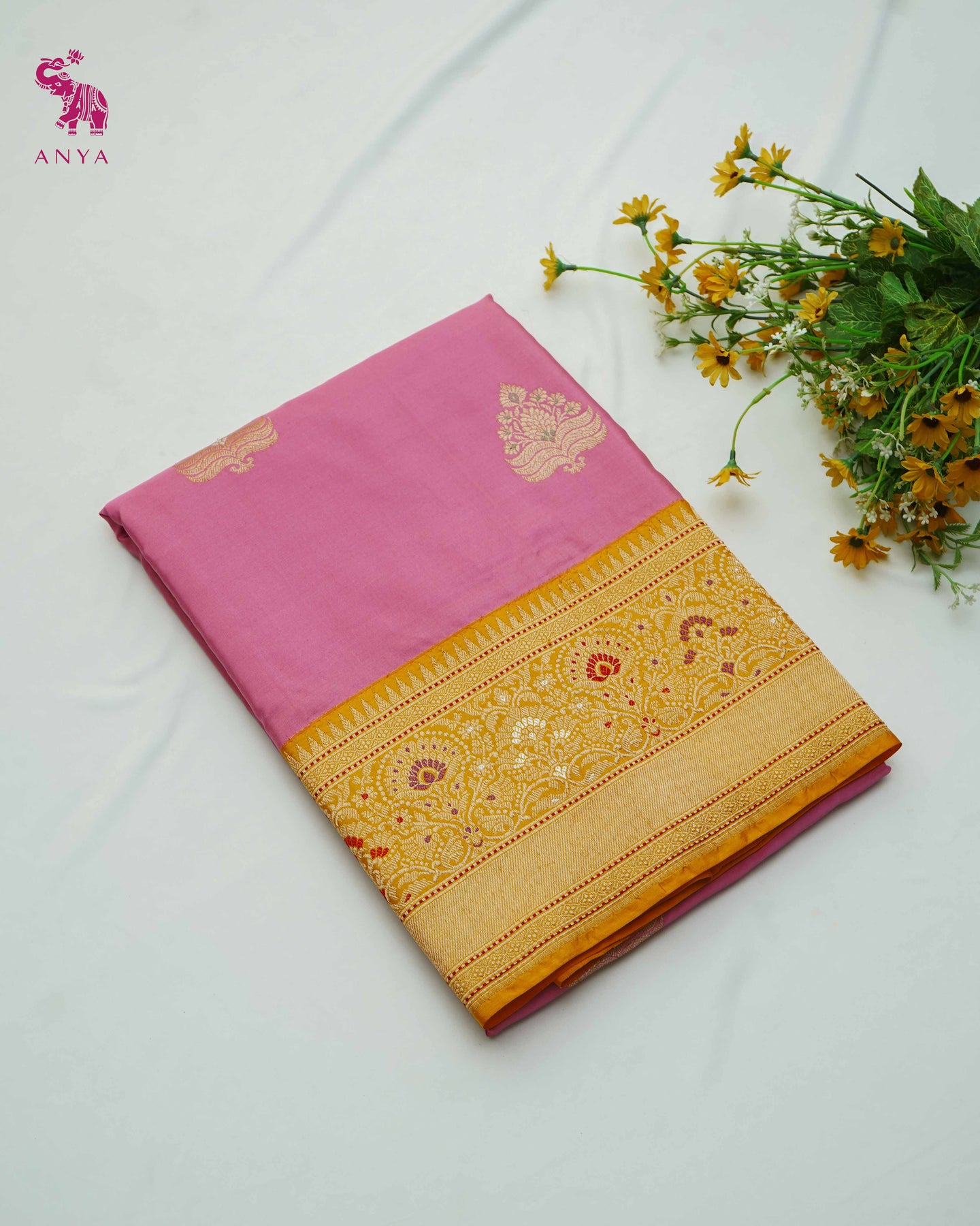 Lotus Pink Banarasi Silk Saree with Big Zari Butta Design